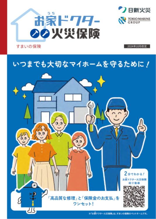 お家ドクター火災保険(すまいの保険) パンフレット お家うちドクター火災保険(すまいの保険) 「高品質な修理」と「保険金のお支払」をワンセットで提供する、自由設計型火災保険です。 保険期間の開始日(保険始期) 2024年10月1日以降のご契約者の方向けパンフレット (3.6MB) 2023年1月1日から2024年9月30日までのご契約者の方向けパンフレット (3.0MB) ※2023年1月1日より、すまいの保険は「住自在」から「お家うちドクター火災保険」にペットネームを変更しました。 2022年12月31日以前の「住自在(すまいの保険)」のご契約者の方は以下をご参照ください。 2022年10月1日から2022年12月31日までのご契約者の方向けパンフレット (1.9MB) 2022年1月1日から2022年9月30日までのご契約者の方向けパンフレット (2.2MB) パンフレット 住宅安心保険 関連記事一覧 ドライビングサポート24プラス ユーサイド(新総合自動車保険) おとなのためのバイク保険(盗難補償付) 自動車損害賠償責任保険(強制保険) 住宅安心保険