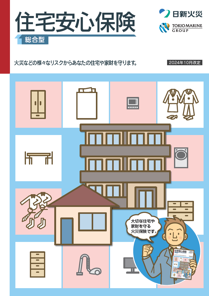 火災リスクをはじめ、風災・水災などの自然災害リスク、盗難・水ぬれなどの日常災害リスクなどによる建物や家財の損害を幅広く補償します。また、オプションにより日常生活における賠償事故など家庭をとりまくリスクに備えることができる総合型火災保険です。
